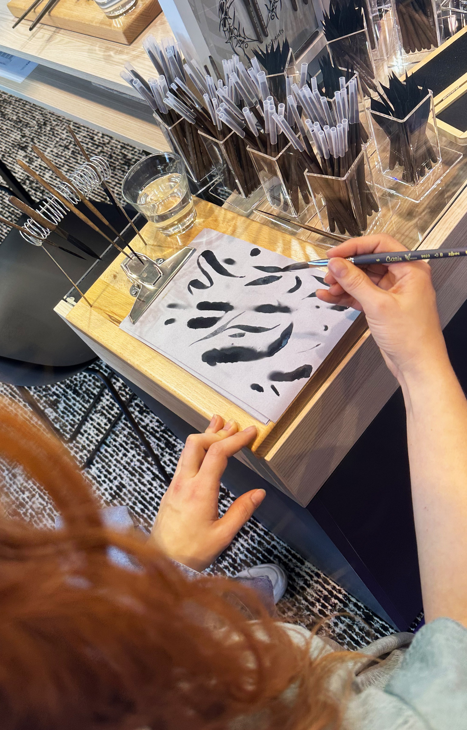 Im Gespräch mit den Pinsel-Herstellern Mesko, Lineo und Kolibri wurde mir aber auch gesagt, dass viele Einkäufer kaum noch die Pinsel ausprobieren wollen. Ein Glück für uns Kreativlinge, dass es aber doch ein Wasserglas und das berühmte „Wasser Papier“ zum Ausprobieren gab!