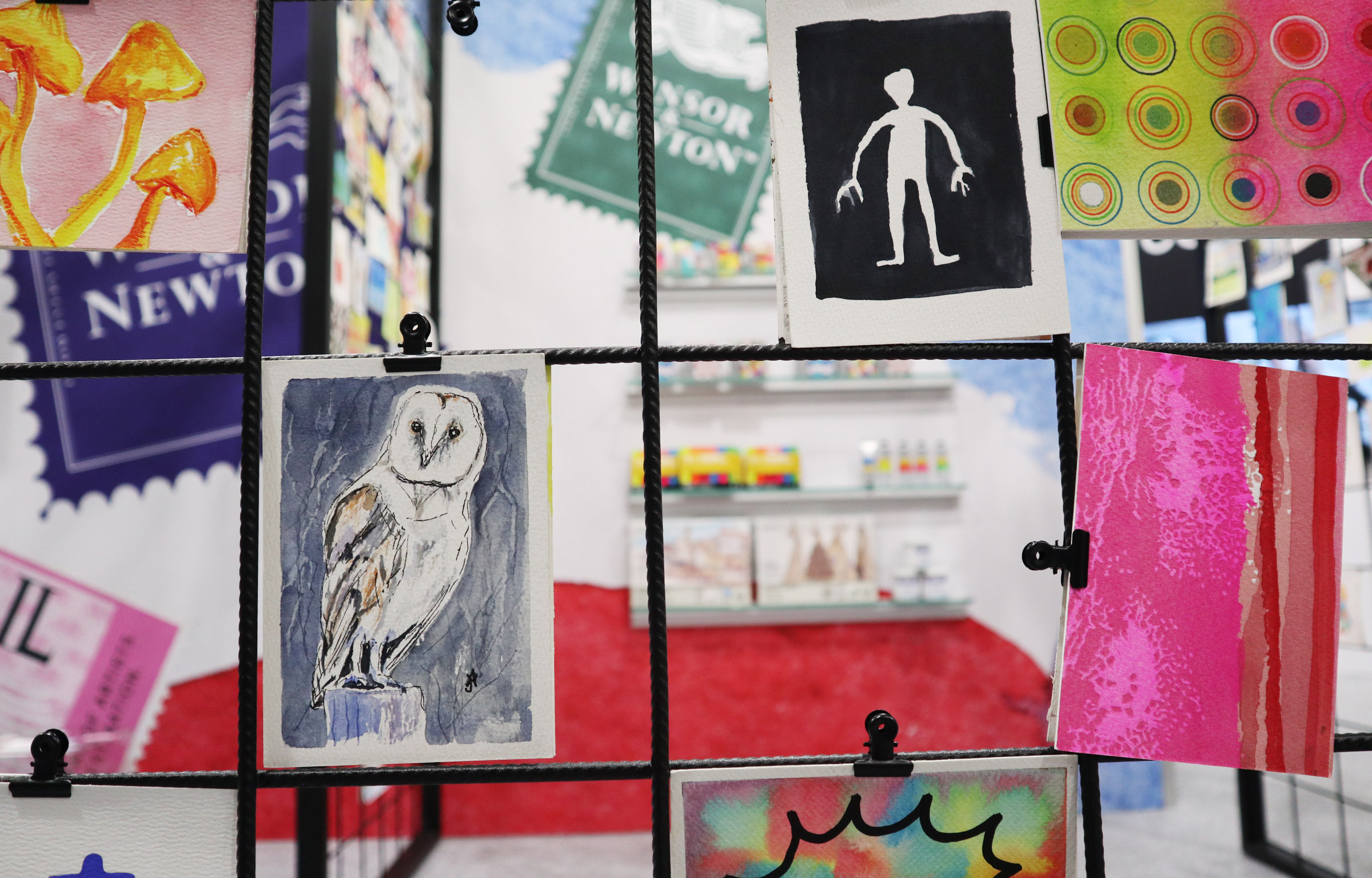 Mit an diesem Stand von Liquitex und Lefranc Bourgeois war die Marke Winsor and Newton mit einer Postkartenaktion.
