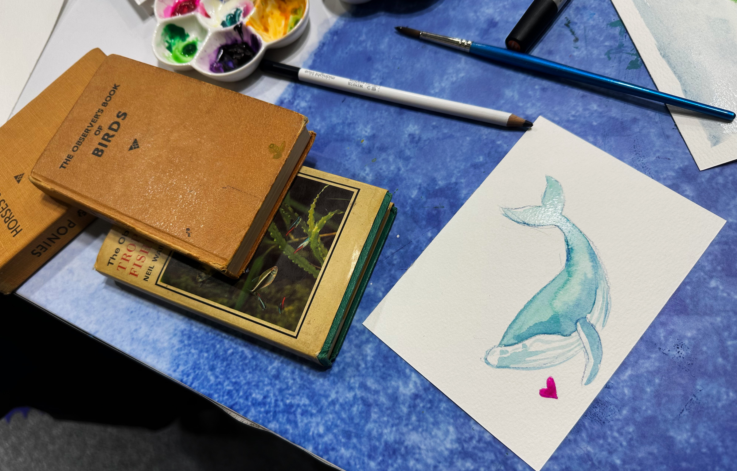 Aber manchmal spricht man dann doch lieber über sein ehrenamtliches Engagement, über Sonnenblumen, Van Gogh und Hokusai und die Verbindung ihrer Kunst, über das Künstler sein und die Zukunftspläne, das Ausprobieren von neuen Techniken, über Neonfarben und die Lichtechtheit derer, über den Vorteil vom Kurzsichtig sein beim Malen von Miniaturen,…