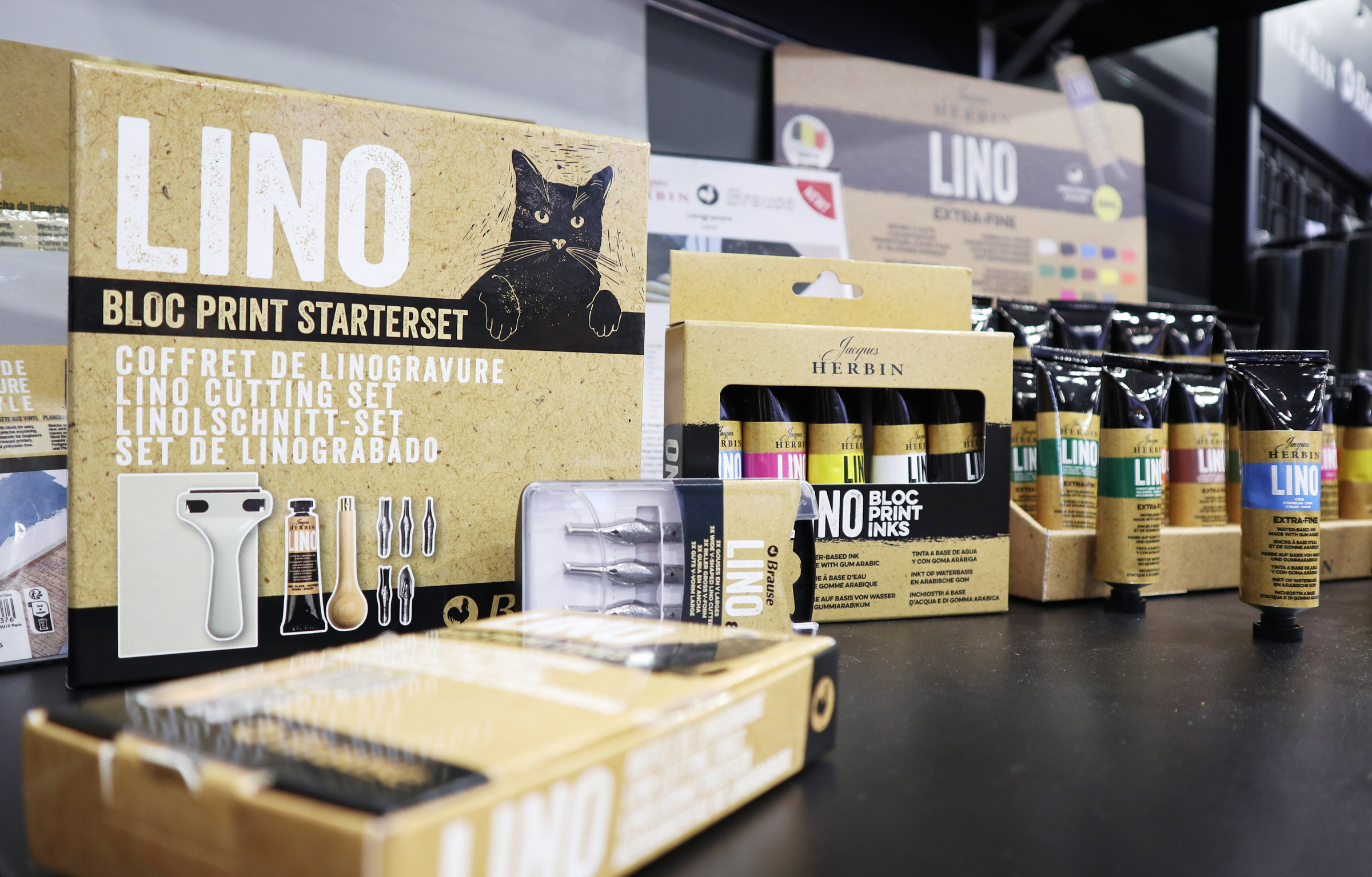 Ich bin kurz am Linolschnittwerkzeug hängen geblieben, dass von Brause hergestellt wird und nun in einem überarbeiteten Set verkauft wird. Dazu gibt es (neu) Linoldruckfarben von Jacques Herbin.